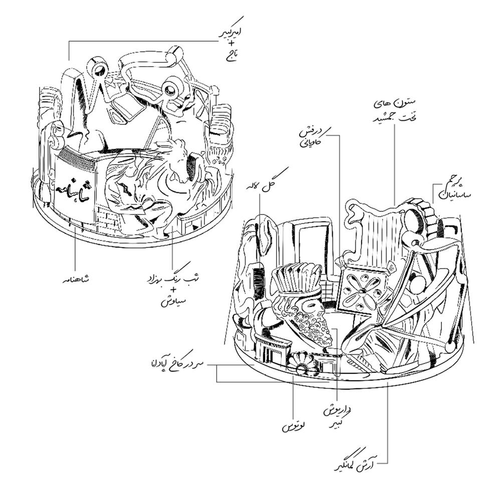 میراث: شاهنامه فردوسی- ستون های تخت جمشید-پرچم ساسانیان-امیرکبیر-نشان تاج-آرش کمانگیر-درفش کاویانی-داریوش- سردر کاخ آپادانا –گل لوتوس –گل لاله- شبرنگ بهزاد - سیاوش.